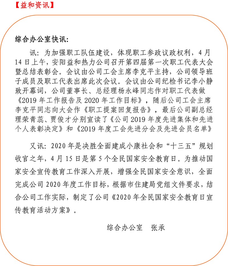 安陽益和熱力公司召開第四屆第一次職工代表大會暨2019年度總結(jié)表彰大會